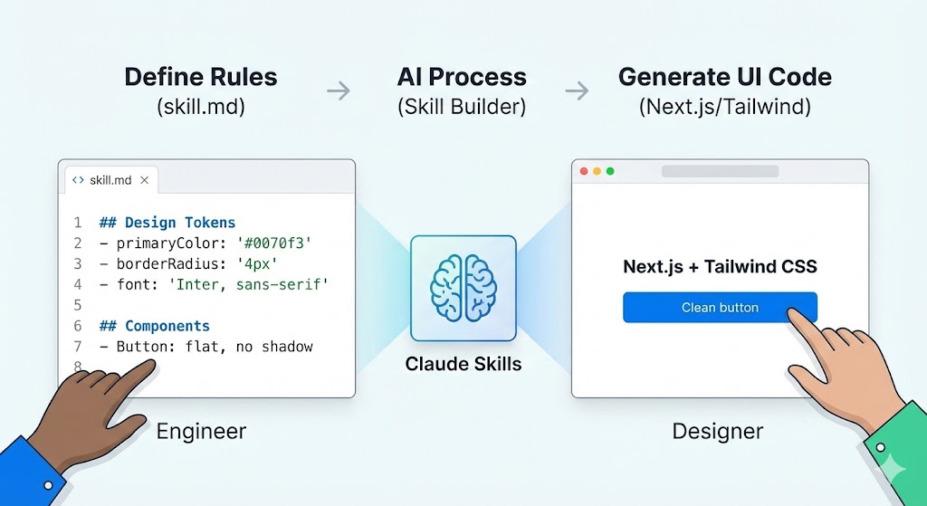 - ルールの記述: skill.md の中に、デザインのルール(トークン)や振る舞いを記述します。