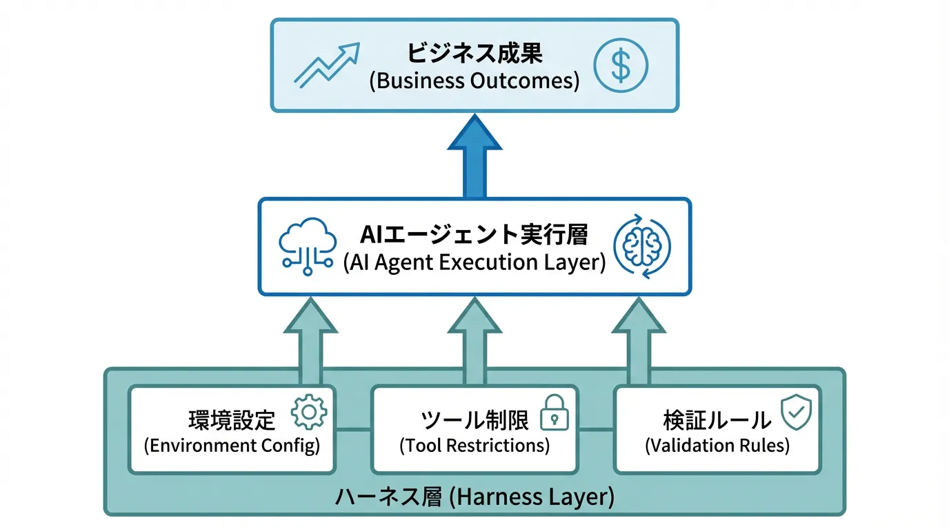 AI駆動開発の成功には、単にAIツールを導入するだけでは不十分です。AIが確実に動作し、期待通りの成果を出すための「環境設計」が必要です。この概念が「ハーネスエンジニアリング」です。