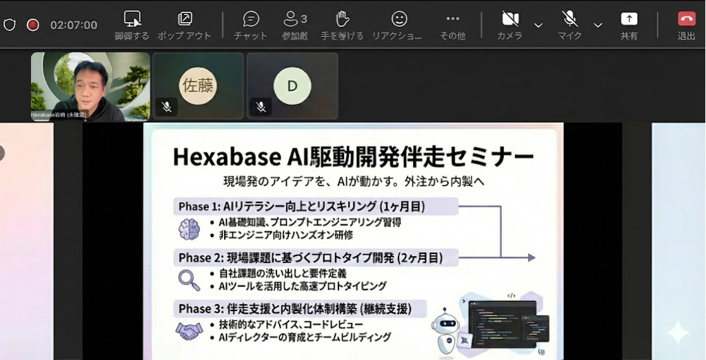 株式会社Hexabase(以下、Hexabase)は、企業の実践的なAI活用と内製化を支援する新ソリューション「現場で学ぶ、AI駆動開発伴走セミナー」の導入事例を公開いたしました。