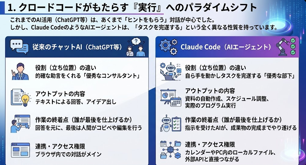 1. クロードコードがもたらす「実行」へのパラダイムシフト