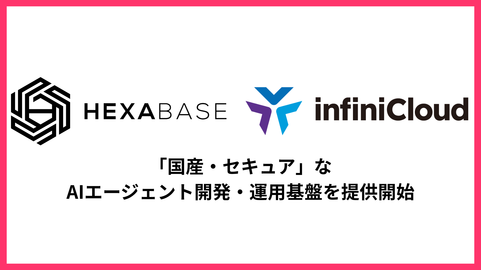 本日、株式会社Hexabaseは、InfiniCloud株式会社と、機密情報や社内データを安全に活用できるAIエージェントの開発・運用基盤の提供に関する戦略的業務提携を締結し、共同プレスリリースを配信いたしました。