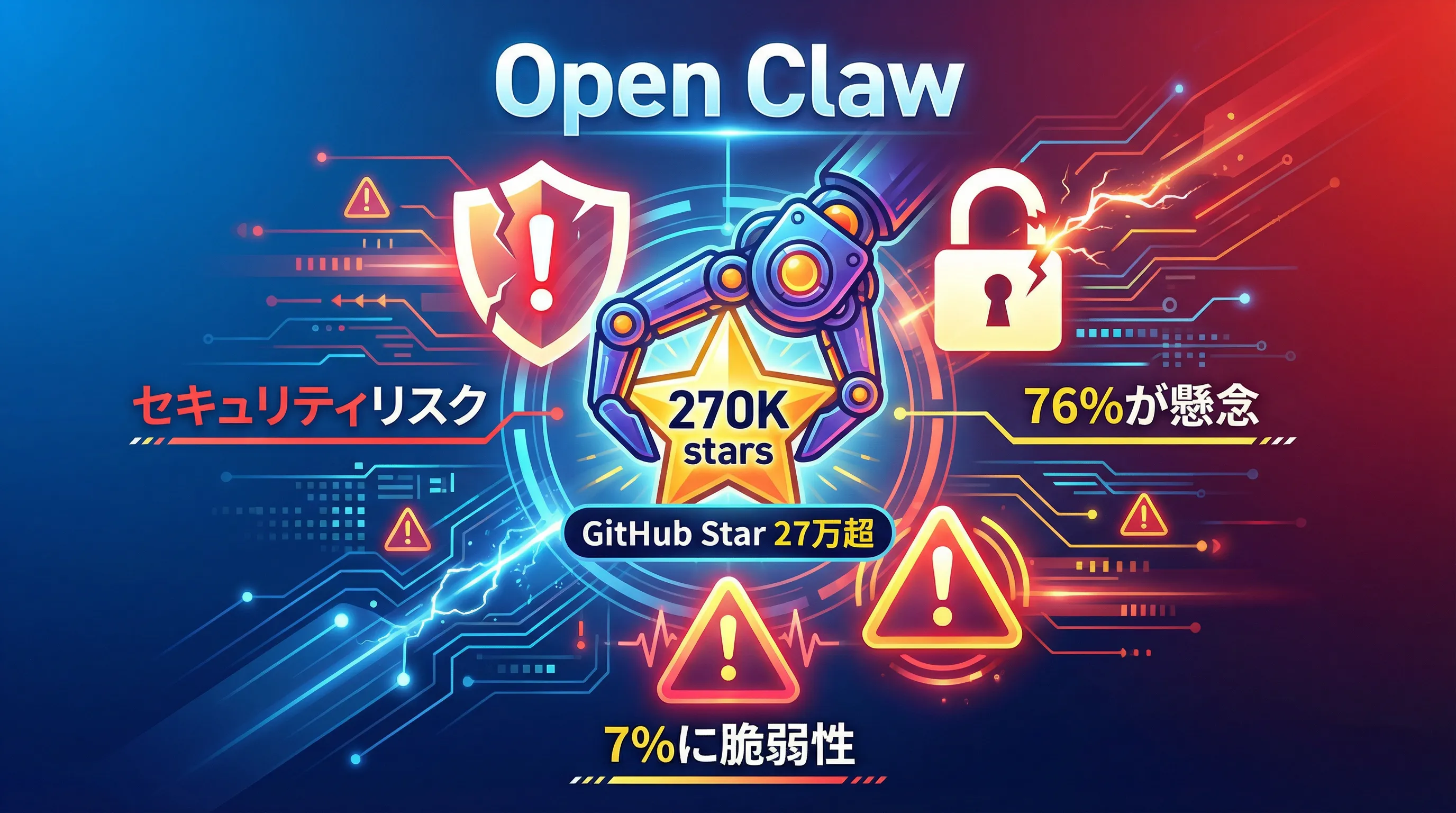 GitHub Star 27万超の『Open Claw』が示す、AIエージェントのセキュリティリスク—76%が懸念する脅威と、今すぐできる5つの対策