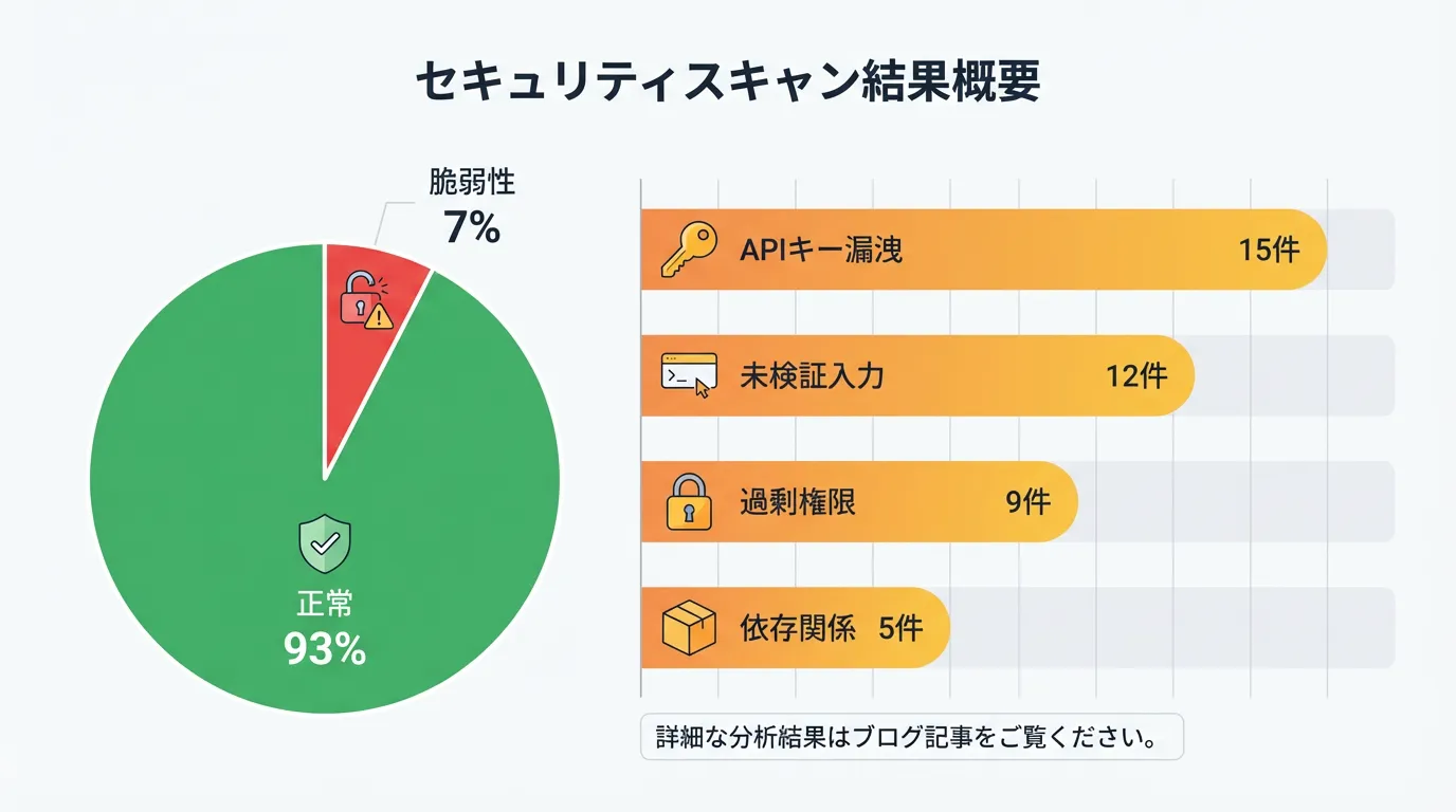 - APIキーのハードコード: スクリプト内にOpenAI APIキー等が平文で記載(283個中最多)